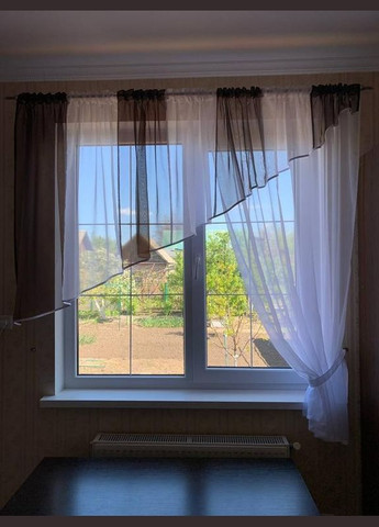 Шифоновые занавески шторы короткие Голубой 2x340x170 см (zanaves089к-3) Готовые занавески тюль с ламбрекеном для кухни Гардина на кухню цветная короткая Шифоновые занавески, рекомендуемая ширина карниза: 1,5 - 2 м Однотонные кухонные занавески из шифона и органзы - это не только стильный элемент декора, но и практичное решение для вашей кухни. Изготовленные из легкой ткани, они пропускают достаточное количество воздуха и естественного света, при этом создавая уютную и свежую атмосферу в вашем пространстве. Шифон - это мягкая и приятная на ощупь ткань, которая не только добавляет пространства и легкости, но и обладает хорошей пропускной способностью. Занавески из этого материала не гарантируют полной защиты от солнечных лучей, однако именно благодаря этому они наполняют помещение новыми яркими красками. Органза - это тонкая и легкая прозрачная ткань, изготовленная из натуральных волокон, таких как шелк, хлопок или синтетических материалов. Эта ткань обладает особым блеском и эффектным мерцанием, что придает занавескам изысканный и нарядный вид. Благодаря ее прозрачной текстуре, органза пропускает максимальное количество света, создавая легкое и воздушное ощущение в помещении. Характеристики: Ширина: 3,4 м Высота: 1,7 м Рекомендуемая ширина карниза: 1,5 - 2 м Возможность регулировки ширины по тесьме: Да Способ крепления на карниз: Тесьма Подхваты в комплекте: Да Материал: Шифон и органза За этими занавескаи легко ухаживать - им требуется лишь низкая температура для стирки и глажки, что делает их идеальным выбором для кухни. Кроме того, их длина оптимальна, чтобы не мешать работе систем отопления, а также подойдет для балконов, добавляя им уюта и стиля. Выбирая наши кухонные занавески, вы получаете не только функциональный элемент, но и стильное дополнение к вашему интерьеру, которое будет радовать вас и ваших близких долгое время.