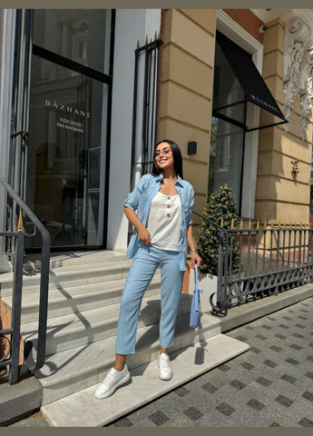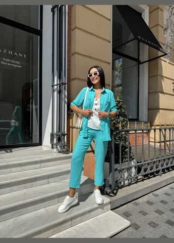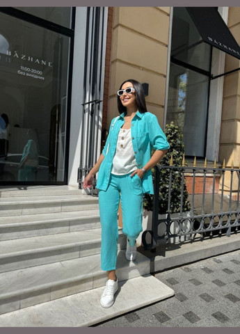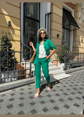 Цвет Фисташковый / Фасон Брючный, С рубашкой / Стиль Повседневный / Узор Однотонный / Материал Креп