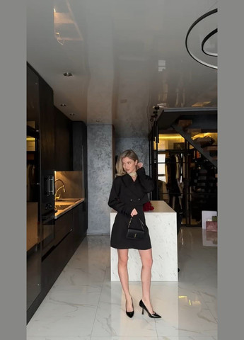 Фасон: Пиджак имеет укороченный крой, идеально сочетающийся с мини-длиной платья, создавая гармоничный силуэт.