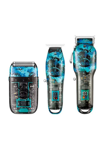 Профессиональный набор 3 в 1 от VGR - идеальный помощник для любого парикмахера или желающих ухаживать за своим видом дома. Этот комплект включает в себя все необходимое для качественной стрижки волос и ухода за внешним видом, обеспечивая профессиональный результат без труда. Характеристики: Машинка для стрижки: ● Тип питания: аккумулятор / сеть (комбинированная) ● Тип аккумулятора: Li-ion ● Скорость двигателя: 5650 об/мин ● Время работы: 300 минут ● Время полного заряда: 3 часа ● Материал ножей: Нержавеющая сталь ● Ширина ножевого блока: 46 мм ● Минимальная высота среза: 0,8 мм ● Максимальная высота среза: 2 мм ● Емкость аккумулятора: 2500 мАч ● LED-индикатор состояния аккумулятора и "своевременной смазки ножей" ● Вес: 270 грамм Электробритва: ● Тип питания: аккумулятор / сеть (комбинированное) ● Время работы: 2 часа ● Время зарядки: 2 часа ● Мотор с частотой 7500 об/мин ● Li-Ion аккумулятор ● Зарядка от любой зарядки для телефона ● Водозащита по IPX5 ● Вес: 180 грамм Триммер: ● Тип питания: аккумулятор / сеть (комбинированное) ● Тип аккумулятора: Li-ion ● Время работы: 3 часа ● Время полного заряда: 3 часа ● Ширина ножевого блока: 40 мм ● Минимальная высота среза: 0,1 мм ● Емкость аккумулятора: 1400 мАч ● Скорость двигателя: 5900 об/мин ● LED-индикатор состояния аккумулятора и масла ножей ● Вес: 150 грамм Комплектация: ● Для машинки для стрижки: пластиковые насадки (8 штук: 1,5мм, 3мм, 4,5мм, 6мм, 10мм, 13мм, 16мм, 19мм), смазка, расческа, щеточка для очистки ножей от волос, защитная крышка, сетевой шнур с зарядным блоком. ● Для электробритвы: кабель для зарядки USB Type-C, зарядный блок, щеточка для очистки, большой тканевый чехол для хранения и транспортировки. ● Для триммера: сменные пластиковые насадки (2 мм, 3 мм и 4 мм), смазочное масло, щеточка для очистки, сетевой шнур USB с зарядным блоком.