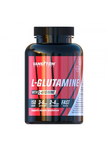 Vansiton L-Glutamine продуцируется в организме из других незаменимых аминокислот, но в условиях стресса (высокие физические или психоэмоциональные нагрузки) его синтез снижается.Особенности:повышает энергетику центральной нервной системыспособствует увеличенному синтезу скелетно-мышечных клетокрасширяет кровеносные сосудыподдерживает нормальную работу головного мозгаспособствует удалению из тканей организма избыточного количества аммиаказащищает клетки мышц от разрушенияспособствует повышению физической работоспособностиВажно знать, что в такие моменты организм очень нуждается в L-глутамина, поэтому необходимо принимать его дополнительно в виде диетических добавок. L-глутамин в больших количествах находится в мышечных тканях, поэтому его регулярный прием увеличивает мышечную массу тела.Как принимать:По 3-6 капсул за 30 минут до погрузки и 2-4 капсулы после погрузки. Не запивать жидкостью, содержащей белок. Не превышать рекомендуемую суточную дозу.Содержание элементов в 1й порции1 капсула, L-глутамин 560 мг, L-аргинин 90 мг, Витамин В6 0,5 мг