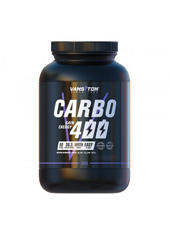 Vansiton Carbo 400 - это концентрированная, научно сбалансированная смесь простых (быстрых) и сложных (медленных) углеводов, обеспечивающая равномерное и длительное поступление энергии в мышечные ткани организма во время интенсивных физических нагрузок.Использование Vansiton Carbo 400 способствует выделению стабильно высокого уровня энергии в течение длительного времени, удаляет порог усталости и повышает физическую работоспособность. Благодаря этому во время тренировок белок не тратится на энергетические цели, что предотвращает разрушение мышечных тканей.Как принимать:1 мерную ложку порошка (30 г) смешайте с 300 мл воды. Полученный напиток принимать по 100 мл непосредственно перед началом физических нагрузок и каждые 20-30 минут в процессе тренировки.Содержание элементов в 1й порции30 грамм, Калории 113,9 ккал, Жиры 0 г, Углеводы 28,3 г, Белок 0 г, Витамин С 48,1 мг, Витамин Е 8,1 мг, Витамин В1 1,3 мг, Витамин В2 1,6 мг, Витамин В3 14,4 мг, Витамин В5 8,3 мг, Витамин В6 1,7 мг, Витамин В7 0,12 мг, Витамин В9 0,3 мг, Витамин В12 0,0009 мг, Ингредиенты, Мальтодекстрин, глюкоза, крахмал картофельный, витаминная смесь: (витамин Е, витамин В1, витамин В2, витамин В6, витамин В12, фолиевая кислота, витамин В5, витамин В3, биотин, витамин С), ароматизатор, натуральный краситель, Состав может незначительно отличаться в зависимости от вкуса