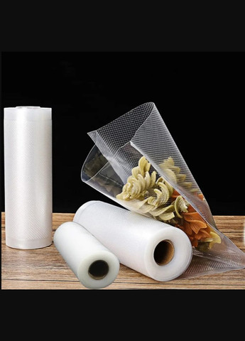 Пакеты для вакууматора рифленые в рулоне 25x500 см гофрированные для вакуумного упаковщика Рулон используется для продолжительного хранения продуктов питания, полуфабрикатов и готовых блюд в безвоздушной (вакуумной) среде. Формирование и запечатывание пакета с продуктом производится с помощью бытового или промышленного вакууматора. Такие рулоны подходят для упаковки всех типов продуктов, приготовления пищи и разогрева в микроволновой печи. С помощью пакетов в рулоне для вакуумного упаковщика можно решить сразу несколько задач: долгосрочное хранение продуктов (особенно при заготовках или мелкооптовых закупках), оптимизация процессов приготовления еды и продление срока годности готовых продуктов, приготовление продуктов методом Су-вид, оптимизация места и предотвращение появления посторонних запахов в холодильнике, предохранение содержимого пакетов и контейнеров от влаги (например, хранение круп во влажном климате, перевозка документов, спичек и патронов и т.п.). Откачка воздуха из контейнера/пакета препятствует образованию грибков и бактерий на продуктах. Снижение окислительных процессов предотвращает порчу продуктов или значительно замедляет эти процессы. Многократно проводимые исследования подтвердили преимущества вакуумирования продуктов, которые заключаются в следующем: обеспечивают более длительное хранение не только в холодильнике, но и вне его предотвращают смешивание запахов экономят место в холодильнике или морозильном отделении используются в качестве основной базы для приготовления блюд по технологии су-вид Преимущества вакуумных пакетов в рулонах Пользователь сам подбирает нужную длину пакета под упаковываемый продукт Длина продукта ограничена лишь длиной пленки в рулоне 7-ми слойная структура пленки обеспечивает повышенную прочность, непроницаемость для кислорода и устойчивость к низким температурам до -30°C Нанесенная на пленку полиэтиленовая нить увеличивает прочность пленки и одновременно создает широкие воздушные каналы для быстрого удаления воздуха Подходят для любых бытовых вакуумных упаковщиков Благодаря вакуумной упаковке существенно продлеваются сроки хранения Не теряются ароматы и вкусовые качества пищевых продуктов Продукты в вакуумной упаковке очень удобно хранить как при обычном температурном режиме холодильника (0…+6°C), так и в морозильных камерах