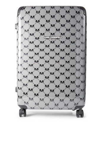 Чемодан Spinner с принтом Karl Lagerfeld. Шикарный чемодан, очень стильный и удобный для путешествий. Необычный принт с лого спереди и логотип бренда сзади. Есть верхняя ручка и ручка складная, которая выдвигается вверх, фиксируясь в определенном положении. Система с четырьмя колесами на 360 градусов.  Застежка молния. Три внутренних кармана на молнии. Два внутренних отделения на молнии. Подкладка внутри с логотипом бренда. Очень удобный и вместительный чемодан. Размер(с колесиками): 50х35х23 см. Отличное качество.