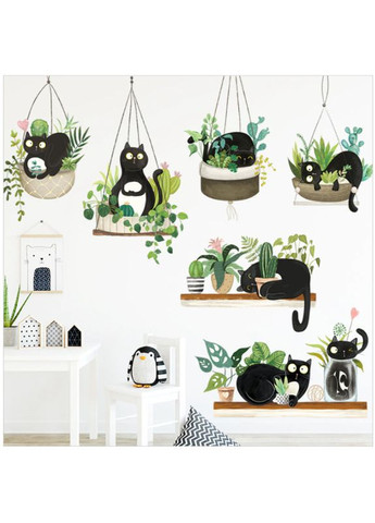 Интерьерные виниловые наклейки на стену, окна, двери "коты-вазоны" Приблизительный размер после наклеивания 97 х 89 см Все наклейки компактно размещены на листе 60 х 90 см