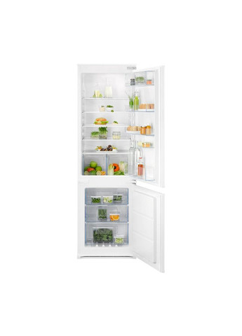 Electrolux RNT6NE18S – встроенный холодильник с нижней морозильной камерой, энергоэффективностью A+, объемом холодильника 192 литра и морозильной камеры 61 литр. Он имеет две двери, инверторный компрессор, внутренний дисплей и поставляется в белом.