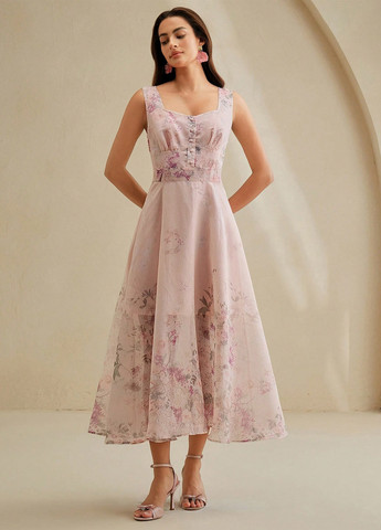 Элегантное женское платье миди Anewsta. Это розовое платье без рукавов с цветочным принтом по всей поверхности. Платье А-силуэта с высокой талией. Подходит для официальных и вечерних мероприятий. Платье изготовлено из полиэстера. Рекомендации по уходу: ручная стирка или профессиональная химчистка.