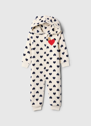 Детский комбинезон GAP. Мягкий и теплый комбинезон из шерпы с капюшоном с ушками. Застежка-молния спереди. Рукава и штанины с манжетами в рубчик. Вышитый мишка с сердцем спереди. Принт - контрастные сердечки по всей поверхности. Отличное качество.