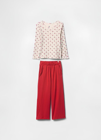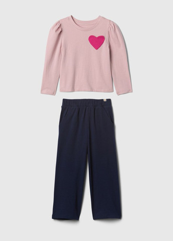 Комплект одежды для девочек GAP кофта и штаны. Уютный комплект, состоящий из кофты с длинным рукавом и штанов. Кофта украшена нагрудным кармашком с вышивкой мишки.  Очаровательный принт в сердечки покрывает всё изделие. Штаны оснащены эластичным поясом. Отличное качество.