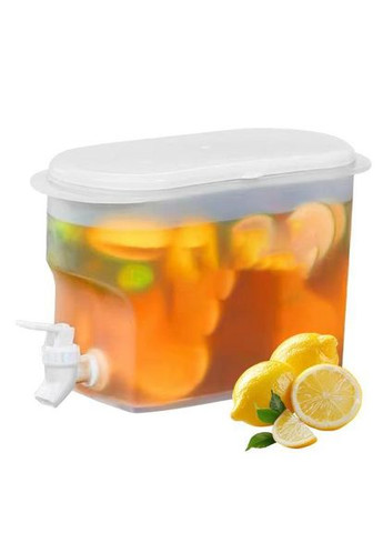 Контейнер для напитков с краном 3.5 л – удобное охлаждение в вашем холодильнике Описание товара Функциональный кувшин с краном для охлажденных напитков станет практическим решением для хранения воды, сока, лимонада или холодного чая. Благодаря компактной форме и удобному дозатору он легко умещается на полке холодильника, не занимая много места. Этот дозатор объемом 3,5 литров изготовлен из пищевого полипропилена (PP) – материала, безопасного для контакта с жидкостями. Прозрачная конструкция позволяет видеть содержимое, а съемная крышка облегчает наполнение сосуда льдом, фруктами или другими ингредиентами. Характеристики: Назначение: подача охлажденных напитков Объем: 3,5 л Материал: пищевой PP-пластик Цвет: белый (полупрозрачный) Размеры: примерно 11 × 25 × 18 см Вес: 0,39 фунта (~180 г) Тип крана: механический, с уплотнением Удобный кран-дозатор — наливайте напитки без лишних крышек Большое отверстие — легко добавить фрукты или кубики льда. Безопасный для здоровья — изготовлен из пищевого пластика пикник на вечеринках, празднованиях, фуршетах для сервировки напитков в кафе или на даче Комплектация: 1 × контейнер для напитков с краном (3,5 л) Обратите внимание: Рекомендуется использовать только для холодных или комнатных напитков Перед первым использованием обязательно промыть теплой водой Не подходит для жидкостей или посудомоечной машины