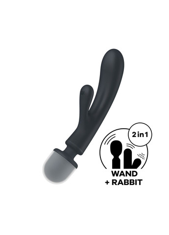 Классический вибратор-кролик или ванд-массажер для любых чувствительных зон? Нет необходимости выбирать! Просто необходимо купить вибратор-кролик с вибромассажером Satisfyer Triple Lover — игрушку для стимуляции клитора, точки G и массажа всего тела. Три мотора обеспечивают мощное воздействие. Можно отдельно управлять кроликом и ванд-массажером: по 12 режимов работы для каждой части этой многофункциональной игрушки. Полностью водонепроницаемый (IPX7), очень тихий и невероятно приятный на ощупь — все для незабываемого удовольствия! Сразу две игрушки в одной! Вибратор-кролик + ванд-массажер, чтобы вы могли и расслабиться при помощи массажа, и получить незабываемое удовольствие от одновременной стимуляции клитора и точки G. Все, что нужно, чтобы провести идеальный вечер после долгого дня! Особенности вибратора-кролика с вибромассажером Satisfyer Triple Lover: необычная конструкция: с одной стороны — классический вибратор-кролик, с другой — универсальный вибромассажер; 3 мотора: в стволе, в отростке и для массажера; гибкий ствол и отросток для комфортного размещения на эрогенных зонах; комфортный размер ствола: рабочая длина 11,4 см, максимальный диаметр 3,5 см; 12 режимов работы кролика: есть вибрации ровные и нежные, есть мощные и ритмичные, на любой вкус! два мотора — в стволе и отростке — управляются синхронно; отдельное управление вибромассажером; 12 режимов работы ванда: выбирайте легкую вибрацию для стимуляции эрогенных зон и более интенсивную для массажа любых частей тела; большая круглая головка покрыта нежным силиконом для самых приятных прикосновений; полностью водонепроницаемый (IPX7) для небольшого баловства в ванне или душе! Вибратор-кролик с вибромассажером Satisfyer Triple Lover легко заменит сразу две игрушки и никогда вам не надоест благодаря большому количеству режимов работы! Не забудьте про лубрикант на водной основе — и глубокие оргазмы не заставят себя ждать. В комплекте — инструкция и магнитный USB-кабель для зарядки. 3 мотора. 12 режимов вибрации кролика (ствол + отросток). 12 режимов работы вибромассажера. Общая длина: 25,4 см. Вводимая длина: 11,4 см. Диаметр ствола: 3,5 см. Размеры клиторального отростка: 5×2,3 см. Размеры головки вибромассажера: 4,5×5 см. Время работы: до 40 минут. Время зарядки: 1,5 часа. Водонепроницаемость: IPX7.