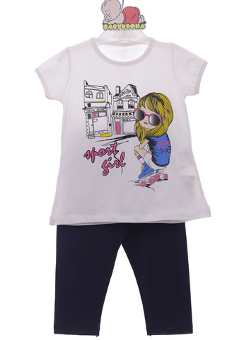 Хлопковый летний комплект для малышки. Состоит из футболочки с коротким рукавом. Милый принт. Также в комплекте есть велосипедки, можно носить вместе или по отдельности. Образмерка Размер B - Длина изделия от плеча см С - Полуобхват груди см D - Длина рукава от воротника см F - Длина по шаговому шву см G - Полуобхват талии см I - Длина изделия от пояса см 98 8 26 12 23 26 41 Таблица возрастов Размер Возраст 98 2г