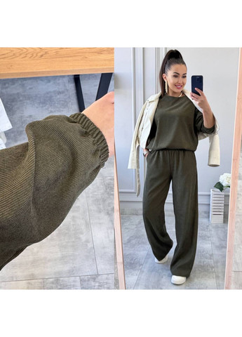 Женский костюм из вельвета – это стильный и комфортный выбор для повседневных образов. Комплект состоит из джогеров и кофты свободного кроя, что создает современный и уютный силуэт.