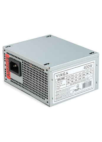 Блок питания Vinga 400W (SFX-400) – это качественный источник электропитания, предназначенный для снабжения узлов компьютера электрической энергии. В его задачи входит преобразование сетевого напряжения в заданные значения, их стабилизация и защита от незначительных помех питающего напряжения. Основным параметром любого компьютерного блока питания является максимальная отдаваемая в нагрузку мощность. У данного блока она составляет 400W, что обеспечит питанием все элементы среднего уровня системы. Конструкция блока питания спроектирована таким образом, что шанс перегрева сведен к минимуму. Внутри металлического кожуха расположен вентилятор солидных размеров, способный обеспечить надлежащее охлаждение. Также данный блок питания обладает такой важной характеристикой как низкий уровень шума, издаваемый в процессе работы. Отдельно следует отметить, что в данной модели блока питания предусмотрена система защиты от перенапряжения, перегрузки и короткого замыкания.