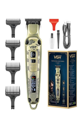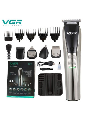 Профессиональная машинка триммер для стрижения волос аккумуляторная 6в1 VGR V-029 Pro + Щетка для очистки Триммер для стрижения волос и бороды 6в1 VGR 10W (V-029) — имеет превосходную прочную конструкцию и эргономичную ручку. все необходимые насадки для Вашего идеального стрижения.Насадки в комплекте: Узкий триммер, Триммер для носа, Дизайнерский триммер, насадка для стрижения волос, Игловая головка, Триммер для тела + Насадки гребня на 3, 6, 9, 12 см Характеристики: - Мощность: 5 Вт- Насадки гребня на 3, 6, 9, 12 см- Тип аккумулятора: Li-Ion- Время работы от аккумулятора: 100 минут (заявлено производителем)- Номинальное напряжение: 110-240 В- Номинальная частота: 50/60 Гц- Размеры: 16.5 х 4 см Комплектация1. Териммер VGR2. Сменные головки3. Насадки гребня — 5 шт.4.USB-кабель для зарядки5.Подставка для хранения6.Рисунок для смазки ножей7. Щетка для очистки8. Заводская упаковка