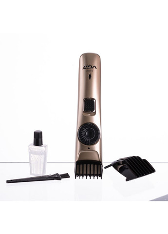 Аккумуляторный триммер VGR V-005 машинка для стрижки волос бороды и усов с сменными насадками 1,5-19 мм Золото - Led дисплей VGR V-005 - это аккумуляторная беспроводная машинка для стрижки волос и бороды с очень стильным дизайном и фантастической точностью среза. В машинке сошлось воедино все самое необходимое для идеальной стрижки: лезвия из нержавеющей стали шириной 44 мм и минимальной длиной среза 0.5 мм, литий ионный (li-ion) аккумулятор с увеличенным временем автономной работы до 250 минут и LED-дисплей. Характеристики: Производитель: VGR; Модель: V-005; Мощность: 8 Вт; LED-дисплей (который показывает уровень заряда аккумулятора и частоту оборотов мотора); Лезвия из нержавеющей стали с керамическим покрытием; Ширина ножа: 44 мм; Тип аккумулятора: li-ion; Емкость аккумулятора: 2600 mAh; Время до полной зарядки аккумулятора: 3,5 часа; Время работы от аккумулятора при полном заряде: 250 минут; Регулировка оборотов машинки: 5500-6000-6500-7000 RPM (4 скорости); Сменные насадки: 1,5 / 3 / 4,5 / 6 / 10 / 13 / 16 / 19 мм; Цвет: Золотой. Комплектация: Машинка для стрижки VGR V-005; Защитный колпачок на лезвия; Щеточка для очистки прибора после использования; Сменные насадки - 8 штук разной длины; USB кабель для зарядки; Инструкция (на английском языке); Фирменная заводская упаковка.