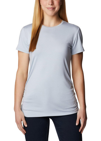 Женская футболка Columbia. Omni-Shade блокирует лучи UVA и UVB, помогая предотвратить солнечные ожоги и долговременное повреждение кожи. Плотная конструкция с волокнами, поглощающими УФ-излучение, блокирует весь спектр вредных солнечных лучей. Вы будете готовы к теплым солнечным дням в этой футболке с короткими рукавами со встроенным UPF 50 и способностью впитывать пот. Эластичная футболка, которая обеспечивает неограниченный диапазон движений и готова к любой летней прогулке. Внизу по бокам сборки. Мягкая и приятная к телу ткань. Машинная стирка. Отличное качество.