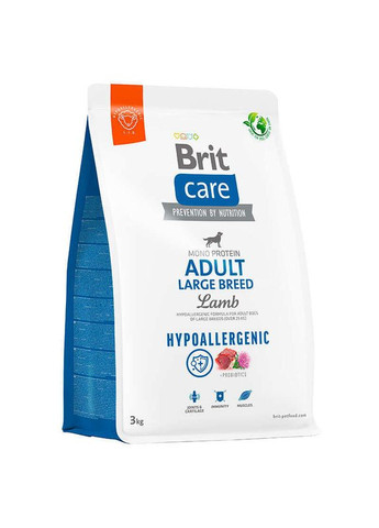 Гипоаллергенный корм суперпремиум класса Brit Care Dog Hypoallergenic Adult Large Breed с ягненком для взрослых собак больших пород (свыше 25 кг). Такой сбалансированный рацион подходит для животных с нормальной потребностью в энергии. Состав, обогащенный аминокислотами, восстанавливает мышечную ткань и способствует наращиванию мышц. Сухой корм Brit Care содержит в своем составе антиоксиданты, пробиотики и расторопшу, что укрепляет иммунную систему собаки (балансирует микрофлору кишечника), поддерживает функционирование пищеварительных органов (налаживается здоровая работа печени и организм эффективнее очищается от вредных токсинов). Улучшается состояние кожи и шерсти любимца, они оздоравливаются, а шерстяной покров приобретает блеск и мягкость. Хондропротекторы в составе корма будут поддерживать рост и развитие костей, суставов и хрящей. Такое питание идеально подходит для собак с чувствительным пищеварением, подверженных аллергическим реакциям и со специфическими требованиями к еде. Преимущества и особенности : ягненок - источник качественного белка. Этот вид мяса минимизирует вероятность возникновения аллергических реакций; состав корма обогащен пробиотиками, которые балансируют микрофлору кишечника и работу пищеварительных органов; расторопша поддерживают функцию печени по очищению организма от вредных веществ; хондропротекторы отвечают за здоровье, рост и развитие суставов, хрящей и костей; антиоксиданты укрепляют иммунитет; оптимальный аминокислотный профиль участвует в создании и восстановлении мышечной ткани. Состав : дегидрированная ягнятина (40%), рис (38%), сушеная яблочная мякоть, куриный жир, натуральный ароматизатор, пивные дрожжи, лососевое масло (2%), гороховая мука, глюкозамин (260 мг/кг), фруктоолигосахариды 200 мг/кг), хондроитина сульфат (200 мг/кг), мананолигосахариды (150 мг/кг), юкка Мохаве (150 мг/кг), семена расторопши (90 мг/кг), β-глюканы (50 мг/кг), пустырник сушеный (50 мг/кг), сушеная облепиха (50 мг/кг), пробиотик Lactobacillus helveticus HA – 122 инактивированный (15x109 клеток/кг). Аналитический состав : сырой протеин 26,0%, сырой жир 14,0%, влага 10,0%, сырая зола 7,0%, сырая клетчатка 3,0%, кальций 1,3%, фосфор 0,9%, натрий 0,4%, Омега-3 жирные кислоты 0,5%, Омега-6 жирные кислоты 1,7%, EПК (20:5 n-3) 0,05%, ДГК (22:6 n-3) 0,1%. Пищевые добавки на 1 кг : витамин А (3a672a) 20000 МЕ, витамин D3 (3a671) 1500 МЕ, витамин Е (3a700) 500 мг, витамин С (3a312) 300 мг, таурин (3a370) 1500 мг, холина 1800 мг, L-карнитин (3a910) 250 мг, витамин B1 (3a821) 2,5 мг, витамин B2 (3a825i) 9,6 мг, биотин (3a880) 3,5 мг, фолиевая кислота (3a316) 1,2 мг, витамин B6 (3a831) 2,5 мг, кальция-D-пантотенат (3a841) 25 мг, ниацинамид (3a315) 32,5 мг, витамин B12 0,1 мг, йод (3b201) 0,8 мг, органический цинк (3b606) 85 мг, органический марганец (3b504) 40 мг, органическая медь (3b406) 18 мг, органическое железо (3b106) 75 мг, органический селен (3b810) 0,16 мг. Содержит одобренные ЕС антиоксиданты: экстракты токоферола из растительного масла (1b306(i)), аскорбил пальмитата (1b304) и экстракта розмарина. Энергетическая ценность : 3690 ккал/кг Рекомендуемые нормы кормления : Таблица кормления: Вес собаки (кг) < 25 25 30 40 50 60 70 80 90 Дневная норма (г/день) Взрослая средняя порода 260 300 370 430 500 560 620 680 *информация об ингредиентах и нутриентном составе корма, нормах кормления на сайте является справочной. Вся информация о продукте представлена непосредственно на упаковке. Чтобы избежать перекорма и возможного ожирения, ориентируйтесь на указанную производителе