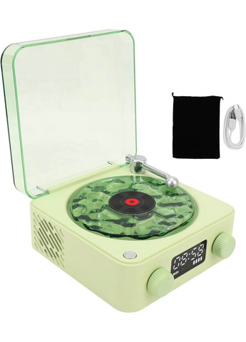 Окунитесь в мир уникального звука и ностальгической эстетики с портативной Bluetooth колонкой в виде винилового проигрывателя. Эта белая колонка не только украсит любой интерьер, но и станет вашим идеальным спутником в путешествиях, пикниках и домашних вечеринках. Характеристики: Bluetooth 5.0: Быстрое и стабильное соединение на расстоянии до 10 метров. Мощность: 5 Вт для насыщенного и качественного звука. Автономность: Встроенный аккумулятор обеспечивает до 6 часов непрерывного воспроизведения музыки и 8 часов белого шума. Белый шум: Функция генерации белого шума помогает расслабиться и улучшить концентрацию, создавая атмосферу покоя в любое время суток. Часы: Элегантные часы, которые придадут стилю и функциональности. Особенности: Уникальный дизайн: Колонка выполнена в виде винилового проигрывателя, что делает ее отличным предметом декора. Удобство использования: Легкий доступ к кнопкам управления, что позволяет легко переключать треки и регулировать громкость. Совместимость: Поддерживает воспроизведение музыки с любых устройств, поддерживающих Bluetooth, включая смартфоны, планшеты и ноутбуки, а также TF-карту и AUX. Портативность: компактные размеры и легкий вес позволяют взять колонку с собой куда угодно. Идеальный выбор для: Музыкальных любителей ценящих качественное звучание и стильный дизайн. Создание уютной атмосферы дома или улицы. Упрощение рутины с помощью функции белого шума, идеально подходящего для сна или медитации. Параметры: Размер изделия: 14.1х14.4х6.6 см Версия Bluetooth: 5.0 Вместимость аккумулятора: 1500mAh Вес изделия: 498 г Время использования: 4-6 часов Время использования белого шума: 6-8 часов Время зарядки: 2-3 ч Входящее напряжение: приема: не более 10 метров
