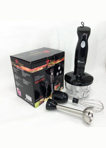 Блендер Domotec MS 5103 – это настоящий агрегат, которыйвыполняет множество функций, благодаря сменным насадкам. Идущий в комплектевенчик позволяет смешивать жидкие продукты, взбивать коктейли, безе и легкиемуссы. Приготовить детское пюре из вареных овощей и фруктов поможет специальнаянасадка для пюре, а стандартная блендерная насадка эффективно справляется сосмешиванием и взбиванием супов-пюре, однородных соусов и подлив, а такжекоктейлей. Блендер имееткомпактные размеры, но при этом обладает хорошей мощностью в 500 Вт. Помимомоторной части в комплекте имеется несколько насадок, чаша для измельченияовощей. Режущие детали измельчителя, венчик и погружная часть блендеравыполнены из высококачественной нержавеющей стали. Характеристики: Эргономический дизайн Мощность: 500 Вт Материал корпуса: пластик Материал ножей: сталь Длина сетевого шнура: 1 м Количество скоростей: 2 Объем кувшина: 0.6 л Плавная регулировка скорости Цвет корпуса: чёрный Комплектация: Блендер Мини-измельчитель Венчик