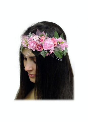 Длина цветочной композиции – 44 см. Высота композиции – 16 см. Длина фаты max – до 120 см. Яркий цветочный венок на голову, декорированный зелеными листьями и большими розовыми пионами, соцветием и двойной фатой, сочетающей белый и розовый цвета. Регулируется и фиксируется с помощью лент из органзы. Подходит для свадеб, девичников, вечеринок в таинственном саду (Secret Garden Party), для костюмов: цветочный эльф, нимфа, фея.
