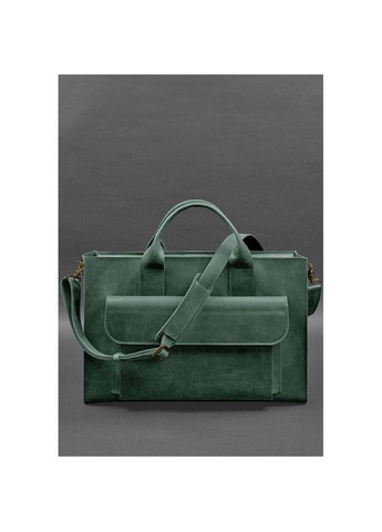 Универсальная зеленая кожаная сумка для ноутбука и документов.