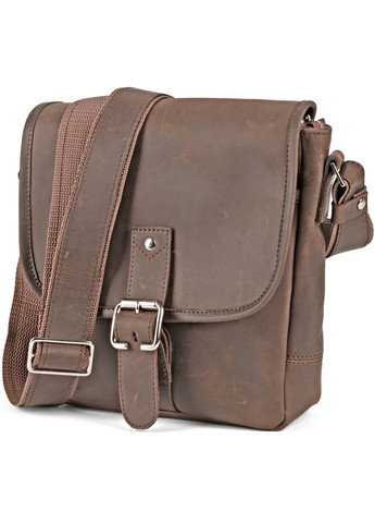 Материал: натуральная кожа; Цвет: коричневый; Размеры (ШхВхГ, см): 22х23х7; Страна производства: Украина. Эта оригинальная кожаная сумка сделана в очень актуальной и модной винтажной обработке. Если Вы следите за современными тенденциями, то стиль этой сумки придется Вам по душе. Особенности: - закрывается молнией и клапаном с магнитной кнопкой; - декоративная пряжка на клапане; - одно основное отделение с прорезным карманом на молнии и накладным кармашком; - с передней стороны под клапаном накладной карман; - задний карман на молнии; - текстильный регулируемый плечевой ремень; - подкладка из черной ткани. Сумочка легкая, прочная и надежная. В ней есть главное отделение, а также несколько дополнительных карманов для мелочей. Пользоваться этой сумкой в качестве аксессуара на каждый день - одно удовольствие.
