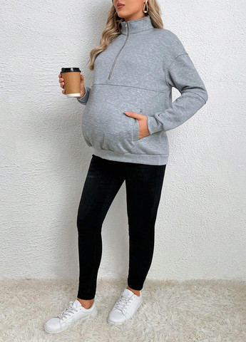 Эта толстовка для беременных имеет серый фланель, длинные рукава со спущенными плечами и повседневный дизайн. Она имеет регулярную посадку, большую длину и воронковидный вырез. Стиль включает в себя половину планки и застежку-молнию с двумя боковыми карманами для дополнительного удобства.