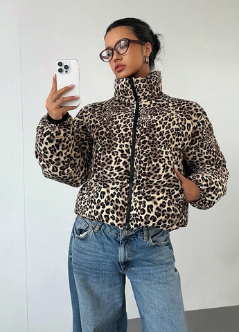 Эта женская куртка имеет леопардовый принт. Подходит для ношения осенью и зимой. Куртка утеплена и имеет свободный крой. Она включает застежку-молнию и карманы. Дизайн включает в себя воронкообразный вырез и обычный подол. Куртка изготовлена из неэластичной ткани и имеет однобортную планку.