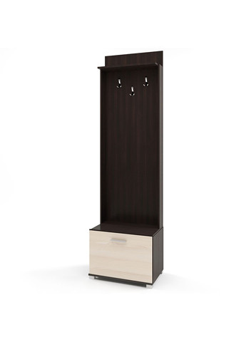 Вешалка напольная Эверест Бриз Венге + Дуб молочный Вешалка напольная Бриз от фабрики Эверест это компактное и функциональное изделие, которое украсит небольшую прихожую вашего дома. Является элементом модульной системы Бриз. Вешалка изготовлена из качественного ламинированного ДСП толщиной 16 мм, кромка ПВХ 0,5 мм. Вешалка Бриз оснащена тремя двойными крючками для верхней одежды. Внизу есть тумба для обуви с откидной дверцей, за которой присутствует полка. Сверху расположена небольшая полка для головных уборов. Размеры: Ширина - 60 см Глубина - 38 см Высота - 210 см Видеоинструкция по сборке Купить недорого вешалку Бриз от фабрики Эверест можно в следующих цветах: Венге + Дуб молочный Дуб сонома + Трюфель СБОРКА И КОМПЛЕКТАЦИЯ Мебель доставляется в фабри в разобранном виде! В комплект поставки входит фурнитура для уборки, все технологические отверстия просверлены. Изделие комплектуется ключом для сборки (шестигранником). Для сборки вам необходимо: Крестовая отвертка Шестигранник (4 мм) Клей ПВА (если есть шканты) Молоток Остались вопросы или хотите дешево купить вешалку Бриз от фабрики Эверест? Оформляйте заказ через корзину или жмите на оранжевую кнопку чата в правом нижнем углу экрана и наши специалисты мгновенно помогут Вам, ответив на все вопросы!