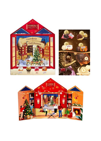 Набор Подарок Новогодний Адвент календарь Ferrero Prestige Collection Advent Calendar Фереро Престиж Премиальные конфеты 239г Адвент-календарь Ferrero Collection – это отличный способ сделать ожидания Рождества и Нового года еще более увлекательным для Вас и ваших Деток. Вместо обычных писем на календаре, в каждой ячейке этого календаря вы найдете цветной и вкусный Cюрприз – конфеты Ferrero Rocher и Raffaello в праздничных индивидуальных обертках. Каждый день к Рождеству вы можете открывать новую ячейку и наслаждаться вкусом этих любимых конфет. Конфеты славятся своей яркостью, сочными цветами и приятным вкусом. Адвент-календарь Ferrero создан, чтобы доставить радость и сладкие мгновения ожидания Праздников. Каждый календарь содержит 259г любимых конфет, которые могут варьироваться в разных цветах и вкусах. Этот адвент-календарь станет отличным подарком для детей и взрослых, добавляя праздничного настроения каждый день перед Рождеством. На картонном адвент-календаре изображена праздничная зимняя сценка, которая сразу придает атмосферности и восхищение. А за его дверцей спрятано мелкое лакомство, которое будет радовать вас каждый день. Размер упаковки: ‎28x35x3 см. Состав набора: Конфеты Ferrero Mon Cheri - Мон Шери вишня в шоколаде - 6шт Конфеты Ferrero Rocher - мини-шарики с шоколадной начинкой 5шт Конфеты Ferrero Küsschen White - пралине с фундуком белый шоколад 6шт Конфеты Ferrero Küsschen Milk - стир с адвент-календарем Ferrero!