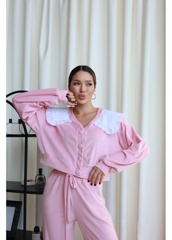 Цвет Розовый / Материал Велюр / Фасон Палаццо / Высота посадки Высокая талия / Узор Однотонный