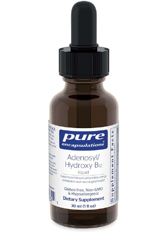 Витамин B12, Adenosyl/Hydroxy B12, Pure Encapsulations - это витаминная пищевая добавка в жидкой форме, которая содержит витамин B12 в формах аденозилкобаламина и гидроксикобаламина.