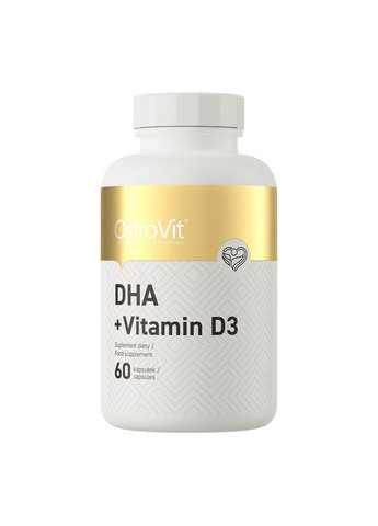 OstroVit DHA + Vitamin D3 - это высококачественная пищевая добавка, являющаяся источником докозагексаеновой кислоты и холекальциферола. Это препарат, доступный в форме легко проглатываемых капсул, предназначенный для людей, которые заботятся о дополнении своего ежедневного рациона ценными ингредиентами.Докозагексаеновая кислота (ДГК) способствует поддержанию нормальной функции мозга и правильного зрения.Витамин D3 помогает поддерживать здоровье костей и зубов, а также правильную работу мышц и, более того, поддерживает правильное функционирование иммунной системы. Соединение также помогает правильному усвоению и использованию кальция и фосфора, а также поддержанию надлежащего уровня кальция в крови. Вещество также участвует в процессе деления клеток.Как принимать:Здоровым взрослым до 75 лет по 1 порции (1 капсуле) в день, взрослым старше 75 лет по 1 порции (2 капсулы) в день, желательно после еды. Запейте достаточным количеством воды.Перед применением желательно проверить уровень 25-(OH)D в крови и проконсультироваться о результате теста с врачом или фармацевтом. Продукт предназначен для взрослых.Содержание элементов в 1й порции1 капсула, Рыбий жир: 1000 мг, - докозагексаеновая кислота DHA 300 мг, Витамин D3 (холекальциферол) 50 мкг(2000 МЕ), , Ингредиенты, Рыбий жир, оболочка капсулы (желатин, увлажнитель: глицерин; очищенная вода), холекальциферол (витамин D).