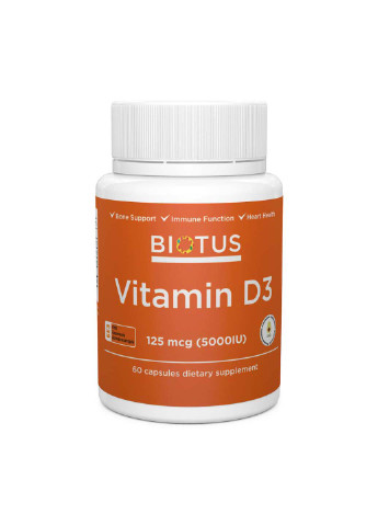 Vitamin D3 от украинского бренда Biotus - это жирорастворимый витамин, который необходим для организма в любом возрасте. Витамин Д3 оказывает поддержку здоровья костей, сердечно-сосудистой, нервно-мышечной и иммунной системы. Для нормальной работы организма витамин Д важен и должен поступать в организм каждый день. Этот жирорастворимый витамин нужен для лучшего усвоения кальция, участвует в минерализации и процессе роста скелета. Витамин Д3 предупреждает слабость мускулов, улучшает тонус мышц, укрепляет иммунную систему, способствует свертываемости крови. С помощью этого витамина внутренние органы функционируют нормально, улучшается работа щитовидной железы. Витамин участвует в регуляции артериального давления, стабилизирует сердцебиение, снижает восприимчивость к заболеваниям сердца и кожи. Также потребность в витамине Д возрастает у женщин во время менопаузы и людей в преклонном возрасте. В терапевтических целях витамин Д3 принимается при лечении атеросклероза. Рекомендуемое применение: В качестве пищевой добавки принимать 1 капсулу в день или по назначению врача. Не содержит: Глютен, ГМО. Предупреждения: Храните в недоступном для детей месте. Хранить в прохладном, сухом месте, вдали от источников тепла и света. Если вы беременны или кормите грудью, проконсультируйтесь с врачом перед использованием этого продукта.