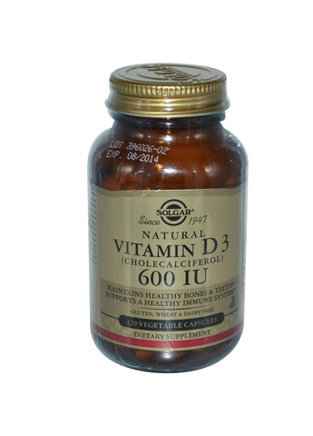 Витамин Д3, Solgar, Vitamin 10000 МЕ, 120 капсул Описание Проводится с 1947 года (холекальциферол) Поддерживает здоровье костей и зубов Поддерживает здоровье иммунной системы Улучшает здоровье тканей Не содержит глютен, кукурузу и молочные продукты Питательная добавка здоровье костей и зубов. Витамин D поддерживает здоровье иммунной системы, поджелудочной железы и разных тканей, например тканей груди, кишечника и простаты. Он также укрепляет мышцы пожилых людей. Натуральный витамин D3 продукции является той же формой, что вырабатывается в организме под влиянием солнечных лучей. С возрастом наш организм производит меньше витамина. Эта продукция предлагает улучшенный витамин D3 в масляных желатиновых капсулах, хорошо усваиваемых организмом. Рекомендации по применению В качестве пищевой добавки для взрослых ежедневно принимать по 1 (одной) капсуле, желательно во время еды или по назначению врача. Другие Ингредиенты Сафлоровое масло, желатин, растительный глицерин. Не содержит глютена, пшеницы, молочных продуктов, сои, дрожжей, сахара, натрия, искусственных ароматизаторов, подсластителей, консервантов и красителей. Если вы беременны, кормите грудью, принимаете какие-либо лекарства или страдаете какой-то болезнью, проконсультируйтесь с врачом перед приемом любых пищевых добавок. Хранить в месте, недоступном для детей. Хранить в прохладном сухом месте. Не используйте, если внешняя предохранительная мембрана бутылки отсутствует, порвана или как-либо повреждена. Дополнительные факты Количество питательных веществ в одной порции (1 порция): капсула Количество на порцию % Дневная норма Витамин D3 (как холекальциферол) 10 000 МЕ 2500% ДН = ежедневное значение Отказ от ответственности В связи с тем, что производитель часто меняет дизайн упаковки и не всегда своевременно. Наш интернет-магазин делает все возможное, чтобы изображения и информация о продукции были предоставлены своевременно и корректно. Даже если маркировка полученной Вами продукции отличается от предоставленной на сайте, мы гарантируем качество и оригинальность товаров. Мы рекомендуем ознакомиться с инструкцией по применению, указанной на товаре, перед использованием, а не полностью полагаться на описание, предоставленное на сайте. Вся продукция, представленная на нашем сайте – биологически активные добавки к пище (БАД) не являются лекарственными средствами и не применяются для лечения каких-либо заболеваний. Перед применением биологически активных добавок в пищу рекомендуется проконсультироваться с врачом. Биологически активные добавки к пище (БАД) не подлежат обязательной сертификации. В соответствии с новой редакцией закона Украины «Об основных основах безопасности и качества пищевых продуктов» издание санитарно-эпидемиологических выводов на БАД было отменено.