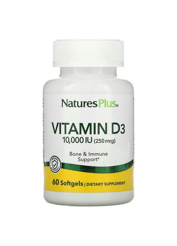 Витамин Д3, 10 000 МЕ, Natures Plus, Maximum Potency, Vit D3, 10,000 IU Витамин Д3, 10 000 МЕ, Maximum Potency, Vit D3, 10,000 IU, Nature's Plus также известный как «солнечный витамин», является важным витамином, который играет важную роль в правильном функционировании организма Состав: Размер порции: 1 капсула Количество порций: 60 Количество на порцию % от суточной потребности Витамин Д3 (холекальциферол) 10 000 МЕ (250 мкг) 1250%