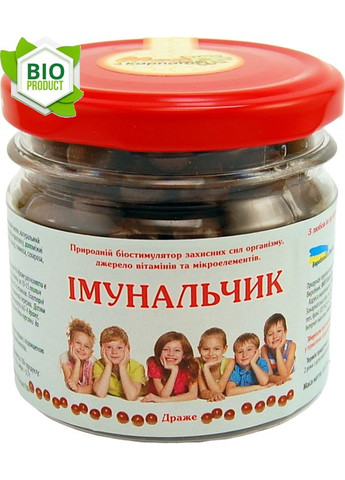 Драже Иммунальчик Содержит цветочную пыльцу, натуральный пчелиный мед, прополис, воск и вспомогательные вещества. Сочетание основных продуктов пчеловодства в особенно легкой до усвоения форме драже является активным терапевтическим препаратом, где свойства каждого из составляющих более выражены и действенны, чем при употреблении каждого из них в отдельности. Биопрепарат усиливает действие медикаментозного лечения, уменьшая негативное влияние на организм, улучшает работу пищеварительной системы, функционирование желчного пузыря, выделение пищеварительных ферментов, нормализует перистальтику, стимулирует гормональный и ферментативный обмен, защитные силы организма, проявляет тонизирующие свойства, добавляет жизненной энергии и жизненной энергии. Показания. Драже Иммунальчик используют: для профилактики простудных и инфекционных заболеваний, для повышения сопротивляемости организма и др.; для беременных женщин, как средство расширения пищевого рациона и его обогащения природными витаминами микроэлементами и биологически активным комплексом, предупреждающим инфекционные заболевания; для профилактики заболеваний желудочно-кишечного тракта, заболеваний сердечно-сосудистой системы, заболеваний, вызванных нарушением обмена веществ, и др.; как общеукрепляющее средство для спортсменов, людей профессиональная деятельность которых связана с большими физическими нагрузками, пожилых людей. Способ применения. Принимают препарат медленно растворяя 4-6 драже в полости рта, два – три раза в день за 10-15 минут до приема пищи. В зависимости от диагноза курс применения может длиться от 2 до 6 недель. Повторные курсы проводят после 1-2 недельного перерыва. Детям до 12 лет рекомендовано употреблять по 2-4 драже, до 7 лет по 1-3 драже 3 раза в день курсами до 3-х недель. Срок годности. 2 года с даты изготовления. Условия хранения . Хранят в сухом, черном, холодном месте. Диетическая добавка. Не является лекарственным средством.