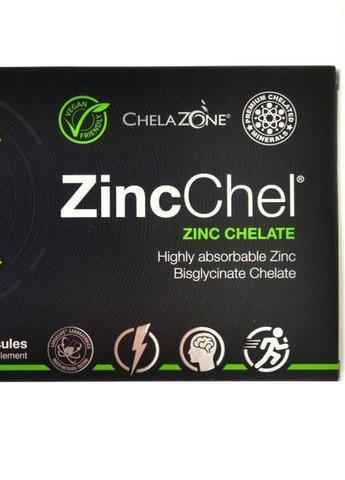 ZincChel Zinc Bisglycinate Chelate - это пищевая добавка, содержащая 100% лучшей, легкоусвояемой формы цинка, хелата бисглицината цинка ChelaZone, содержащегося в растительной капсуле Vcaps Plus. Цинк – микроэлемент, выполняющий множество функций в организме. Это необходимо для правильного роста и регенерации тканей. Кроме того, он участвует в репродуктивных процессах и отвечает за правильное функционирование иммунной системы. Дефицит цинка в организме вызывает снижение иммунитета и воспаление кожи. Цинк выполняет следующие функции в организме: • необходим для синтеза белков, ДНК и РНК нуклеиновых кислот • участвует в экспрессии генов • отвечает за сократимость мышц • участвует в процессе выработки инсулина • позволяет поддерживать оптимальную концентрацию витамина А и его потребление тканями • улучшает интеллектуальную работоспособность, особенно у пожилых людей • участвует в процессах минерализации костей и регенерации тканей • поддерживает иммунную систему, так как обладает бактериостатическим и противовоспалительным действием, защищая от инфекций • улучшает работу щитовидной железы • уменьшает боль при ревматических проблемах Рекомендации по применению: Принимать по 1 капсуле в день во время еды. Запивать большим количеством воды.