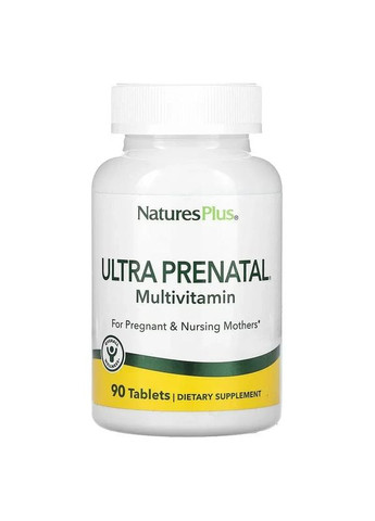 Мультивитамины Ультрапренатальные Ultra Prenatal Multivitamin Natures Plus, 90 таблеток Краткое описание Ultra Prenatal Multivitamin от Natures Plus — это специально разработанный комплекс для поддержки здоровья женщин во время планирования беременности, беременности и лактации. Продукт содержит сбалансированный набор витаминов и минералов, обеспечивающих оптимальную поддержку развития плода, укрепляющих иммунную систему матери и способствующих нормальному функционированию организма в этот важный период. Комплекс помогает предотвратить дефицит ключевых нутриентов и поддерживает энергетический баланс, что особенно важно для будущих мам. Кому рекомендовано Женщинам, которые планируют беременность. Беременным женщинам для поддержания здорового развития плода. Матерям во время грудного вскармливания. Женщинам, нуждающимся в дополнительной поддержке витаминов и минералов в период беременности и лактации. Таблица склада Ингредиент Количество на порцию (2 таблетки) % суточной нормы Витамин А (бета-каротин) 3003 мкг RAE (10 000 IU) 221% Витамин С (аскорбиновая кислота) 100 мг 125% Витамин D3 (холекальциферол) 15 мкг (600 IU) 75% Витамин Е (D-альфа токоферил сукцинат) 15 мг 100% Тиамин (витамин В1) 40 мг NE 3333% Ниацин (никотинамид) 83 мкг DFE 520% Фолиевая кислота (L-5-метилтетрагидрофолат) 800 мкг 200% Витамин В12 (метилкобаламин) 600 мкг 25000% Биотин 60 мкг 20% Пантотеновая кислота (кальциевый пантотенат) 50 мг 500% Кальций (в форме аминокислотного комплекса) 225 мг 17% Железо (аминокислотный хелат) 18 мг 100% Йод (в форме йодида калия) 150 мкг 100% Магний (в форме аминокислотного комплекса) 100 мг 24% Цинк (аминокислотный комплекс, пиколинат) 15 мг 136% Селен (аминокислотный комплекс) 25 мкг 45% Медь (аминокислотный комплекс) 0,5 мг 56% Марганец (аминокислотный комплекс) 2 мг 87% Парааминобензойная кислота 10 мг —