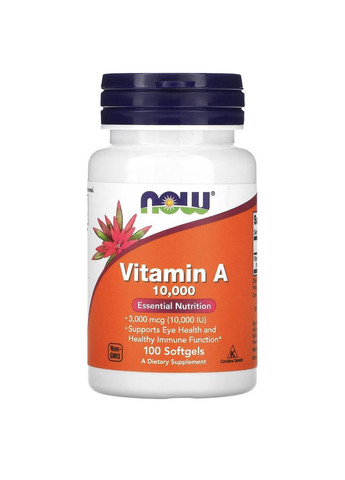 Описание Содержит незаменимые питательные вещества 3 000 мкг (10 000 МЕ) Поддерживает здоровье глаз и нормальную работу иммунной системы Без ГМО Диетическая добавка Кошерный продукт, содержащий желатин Витамины Семейное предприятие, основанное в 1968 году Изготовлено на предприятии с регистрацией GMP Витамин A необходим для поддержания тканей, выстилающих внутренние и наружные поверхности тела, включая глаза, кожу, дыхательные, желудочно-кишечные и мочевые пути. Рекомендации по применению Применение: Принимать по 1 капсуле в день во время приема пищи. Предупреждения Продукт может естественным образом изменять цвет. После вскрытия упаковки хранить в сухом прохладном месте. Только для взрослых. Не следует превышать рекомендованную дозу. Не применять во время беременности, планирования или грудного вскармливания. Перед началом применения препарата при наличии заболеваний или при приеме препаратов следует проконсультироваться с врачом. Хранить в месте, недоступном для детей. Предупреждение о законодательном действии 65 штата Калифорния. в случае употребления этого продукта вы можете подвергнуться воздействию химических веществ, в частности ретинола, который, по данным штата Калифорния, может вызвать врожденные аномалии развития или отрицательно влиять на репродуктивную систему.