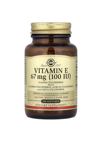 Описание Компания основана в 1947 году Содержит d-альфа-токоферол, d-гамма-токоферол, d-дельта-токоферол и d-бета-токоферол. Природный антиоксидант Без глютена, пшеницы и молочных продуктов Диетическая добавка Витамин E – это важное питательное вещество, являющееся первичным жирорастворимым антиоксидантом в организме. Он помогает бороться со свободными радикалами, которые разрушают клетки, вызывают оксидативный стресс в организме и способствуют преждевременному старению клеток. Эта добавка обеспечивает организм витамином E природного происхождения в виде d-альфа-токоферола вместе со смешанными токоферолами, включая d-гамма-, d-дельта-, и d-бета-токоферолы. Добавка поставляется в капсулах на основе масла, чтобы облегчить его усвоение. Рекомендации по применению В качестве диетической добавки для взрослых принимать по одной (1) капсуле 1–2 раза в день, желательно во время еды или согласно рекомендациям врача. Предупреждения Перед началом применения во время беременности, грудного вскармливания, планирования любой медицинской или хирургической процедуры при наличии каких-либо заболеваний, в случае приема препаратов нужно проконсультироваться с врачом. В случае возникновения нежелательных реакций следует прекратить прием и обратиться к врачу. Хранить в месте, недоступном для детей. Хранить при комнатной температуре. Не используйте, если внутренняя защитная пленка отсутствует или повреждена.