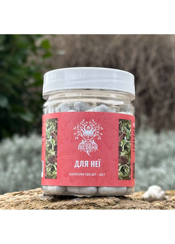 Уникальный комплекс «Для нее», представленный «Лесовиком» - это лучшее сочетание двух целебных растений, которые очень положительно влияют на женский организм. Он состоит из Боровой матки и Красной щетки. Эти растения богаты на природные фитогормоны, которые просто необходимы женщине и ее организму. Эти капсулы - это настоящая находка для женщин любого возраста. Их легко принимать, просто запив водой. Нет потребности в самостоятельном отмеривании дневной дозы. Комплекс «Для нее» прекрасно подходят для того, чтобы брать их с собой куда угодно. Они используются как для профилактики, так и для избавления от различных проблем с организмом, но, конечно, по рекомендации и под наблюдением специалиста. Эффекты от комплекса «Для нее» Комплекс «Для нее» является очень полезным. Употребляя его на постоянной основе, можно заметить следующие положительные результаты: Гармонизация гормонального фона. Боровая матка и Красная щетка помогают уравновесить уровень гормонов, что особенно важно при нарушениях менструального цикла, предменструальном синдроме и климаксе. Поддержка репродуктивной функции. Традиционно Боровая матка считается одним из самых эффективных средств для лечения бесплодия. Противовоспалительное действие. Капсулы помогают устранить воспалительные процессы в органах малого таза, что важно при цистите, эндометрите, аднексите и других гинекологических заболеваниях. Укрепление иммунной системы. Красная щетка способствует повышению защитных функций организма, что особенно полезно в период сезонных заболеваний. Улучшение кровообращения и восстановление тканей. Растения, входящие в состав, способствуют лучшему кровоснабжению органов, стимулируют процессы регенерации, ускоряют заживление ран и рост переломов. Поддержка нервной системы. Капсулы обладают легким седативным действием, помогают бороться со стрессом, нормализуют сон и уменьшают раздражительность. Кому подходит комплекс Этот комплекс станет хорошим выбором для всех женщин, желающих иметь крепкий организм и иммунитет. Особенно он будет полезен тем, кто имеет нарушения менструального цикла, при планировании беременности, в период менопаузы, при гинекологических проблемах. Также это отличное средство для людей с ослабленной иммунной системой. Натуральный состав Комплекс «Для нее» - это абсолютно натуральный и природный продукт. Здесь нет никаких синтетических добавок и химии, поэтому он является полностью безопасным. Это идеальное сочетание народной медицины и современного подхода к укреплению женского организма. Выбирая капсулы «Для нее», который предлагает «Лесовик», вы выбираете натуральную поддержку организма. Это мягкое, комплексное и эффективное действие, и его результат заметен с первых дней приема. Выбирайте лучшие продукты от «Лесовик» - выбирайте естественное! Инструкция Обычная дневная норма капсул: от 1.5 г до 3 г. Принимать которые нужно 3 раза в день. В случае первого знакомства с этим микродозингом, стоит начинать с минимальной дневной дозы, и не превышать показатели, указанные в инструкции и описании каждого продукта. И наблюдать за эффектом постепенно, повышая дневную норму до 3 г (мы рекомендуем три приема по 1 г, это 3 г в день). Запивать желательно теплой водой Курс приема составляет от 1 до 2 месяцев. Во время курса желательно употр