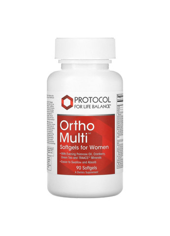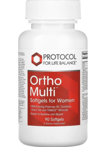 Основные преимущества: Ortho Multi for Women, Protocol for Life Balance, 90 гелевых капсул Ortho Multi for Women — это специально разработанный комплекс витаминов и минералов для женщин, направленный на поддержку общего здоровья, энергии и жизненного тонуса Размер порции: 3 гелевые капсулы Количество порций: 30 Количество на порцию % от суточной потребности Калории 25 Всего жиров 2 г 3%** Белок 1 г Витамин А (100% бета-каротин) 1,5 (Belatene®) 1500 мкг 167% Витамин С (аскорбат кальция) 200 мг 222% Витамин D-3 (холекальциферол) 25 мкг (1000 МЕ) 125% Витамин Е (d-альфа-токоферол) 100 мг 667% Витамин К-1 (фитонадион) 35 мкг 29% Тиамин (вит. B-1) (тиамин гидрохлорида) 25 мг 2083% Рибофлавин (витамин B-2) 25 мг 1923% Ниацин (витамин B-3) (ниацинамид и инозитол гексаникотината) 25 мг 156% Витамин B-6 [пиридоксин гидрохлорида и пиридоксаль-5-фосфат (P-5-P)] 25 мг 1471% Фолиевая кислота 1360 мкг DFE (800 мкг фолиевой кислоты) 340% Витамин B-12 (метилкобаламин) 120 мкг 5000% Биотин 300 мкг 1000% Пантотеновая кислота (витамин B-5) (пантотенат кальция) 50 мг 1000% Холин (холин битартрата) 25 мг 5% Кальций (минералы, полученные из морских водорослей Aquamin®, карбонат кальция, аскорбат кальция, пантотенат кальция) 140 мг 11% Железо (бисглицинат железа) (Ferrochel™) 6 мг 33% Йод (йодид калия) 225 мкг 150% Магний (цитрат магния, оксид магния и минералы, полученные из морских водорослей Aquamin®) 100 мг 24% Цинк (бисглицинат цинка) (TRAACS ™) 15 мг 136% Селен (глицинат селена) (Albion™) 200 мкг 364% Медь (бисглицинат меди) (TRAACS™) 1 мг 111% Марганец (бисглицинат марганца) (TRAACS™) 2 мг 87% Хром (хром никотинат глицинат) (TRAACS™) 120 мкг 343% Молибден (глицинат молибдена) (TRAACS™) 75 мкг 167% Калий (хлорид калия) 25 мг <1% Масло примулы вечерней (Oenothera biennis) (семена) 500 мг * Концентрат клюквы (Vaccinium macrocarpon) (фрукты) 100 мг * Экстракт хвоща (Equisetum arvense) (надземные части) (минимум 8% кремнезема) 50 мг * Альфа-липоевая кислота 25 мг * Экстракт виноградных косточек (Vitis vinifera) 25 мг * Экстракт зеленого чая (Camellia sinensis) (лист) 25 мг * Инозитол 25 мг * CoQ10 (коэнзим Q10) (убихинон) 10 мг * Ликопин (экстракт томата) (LYC-O-MATO®) 500 мкг * Лютеин (экстракт цветков бархатцев) (Tagetes erecta) (FloraGLO®) 500 мкг * Витамин К-2 (менахинон) 45 мкг * ** Процент суточной потребности рассчитан на основе диеты в 2000 калорий. * Суточная потребность не определена.