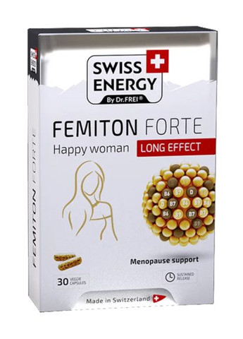 Поддержка при менопаузе (Femiton Forte Woman) — это мультикомпонентный нутрицевтический комплекс, разработанный с учетом физиологических особенностей женского организма в периоды пременопаузы и менопаузы. Продукт не содержит синтетических гормонов и подходит для регулярного применения. Производитель: Swiss Energy, Швейцария Форма выпуска: 30 капсул Возраст: 40+ Cостав: Компонент Состав 1 капсулы Экстракт сои (40% изофлавонов) 200 мг Экстракт клопогона 40 мг Витамин В6 6 мг Витамин D 10 мкг Фолиевая кислота 200 мкг Биотин 150 мкг Другие ингредиенты: микрокристалическая целлюлоза, стеарат магния, гипромелоза. Не содержит: глютена, ГМО, искусственных ароматизаторов и консервантов, молока, яиц, сои, арахиса, рыбы, пшеницы, орехов, ракообразных. Функциональное действие: Поддержка при менопаузе (Femiton Forte Woman) объединяет растительные экстракты и витамины, которые направлены на поддержку баланса в период гормональной перестройки. Экстракт сои является источником фитоэстрогенов, которые структурно близки к эстрогенам человека. Эти соединения взаимодействуют с рецепторами, чувствительными к гормонам, и участвуют в процессах, происходящих при гормональной перестройке. Экстракт клопогона используется в традиционной фитотерапии как компонент, направленный на состояние женщин в период менопаузы. Связан с регуляцией вегетативных проявлений и эмоционального фона. Витамин B6 вовлечен в синтез нейромедиаторов, таких как серотонин и дофамин. Участвует в регуляции эмоциональных реакций, сна и обмене белков. Биотин задействован в обмене жирных кислот и состоянии кожи, волос и ногтей. Может быть актуален в периоды изменения гормонального фона, отражающихся на внешнем виде. Фолиевая кислота играет роль в делении клеток и синтезе ДНК, особенно важна в периоды физиологических перестроек. Также участвует в обмене аминокислот и нервных процессах. Витамин D поддерживает уровень кальция и фосфора, участвует в формировании костной ткани. Также взаимодействует с иммунной системой и клеточными рецепторами. Применение: Принимать по 1 капсуле в день. Противопоказания: Индивидуальная непереносимость компонентов. Предупреждение: При приеме каких-либо медицинских препаратов или наличии каких-либо заболеваний следует проконсультироваться с врачом перед употреблением любых пищевых добавок. В случае возникновения каких-либо побочных реакций прекратите использование и проконсультируйтесь с врачом. Хранить в недоступном для детей месте. Не использовать, если внешняя защитная мембрана отсутствует или повреждена. *** Производитель оставляет за собой право изменить внешний вид упаковки. Мы стараемся следить за изменениями, но, если вы заметили какое-либо несоответствие, пожалуйста, сообщите нам об этом в письме или в комментарии к товару. Спасибо! **** БАД не является лекарством!