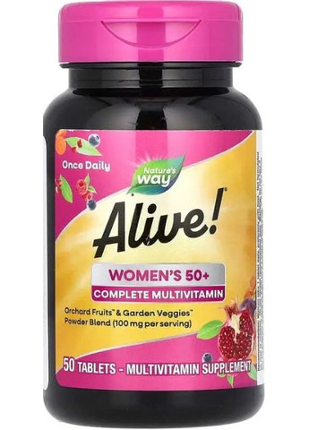 Мультивитамины для женщин 50+ (Alive! Women's multi-vitamin), Nature's Way - это премиум формула, самый полный ежедневный мультивитаминный комплекс для женщин после 50 лет. Формула сбалансирована с учетом возрастных особенностей и содержит 14 видов зелени, 23 витамина и минерала, 26 овощей и фруктов, 12 грибов (натуральных), 12 пищеварительных ферментов, необходимых для лиц после 50 лет. Производитель: Natures Way, США Форма выпуска: 60 таблеток Возраст: 50+ Состав: Компонент Состав 1 таблетки Витамин А (ретинилацетат и бета-каротин) 3087 МЕ Витамин С (аскорбиновая кислота) 180 мг Витамин D3 (холекальциферол) 2000 МЕ Витамин Е (сукцинат d-альфа-токоферил) 60.5 МЕ Витамин К (фитонадион) 150 мкг Тиамин (витамин В1) 20 мг Рибофлавин (витамин В2) 20 мг Ниацин (ниацинамид) 40 мг Витамин В6 (пиридоксин HCl) 20 мг Фолиевая кислота 240 мкг Витамин В12 (метилкобаламин) 90 мкг Биотин 33 мкг Пантотеновая кислота 20 мг Кальций 130 мг Йод (йодид калия) 150 мкг Магний 105 мг Цинк (оксид цинка) 11 мг Селен (селенат натрия) 200 мкг Медь (сульфат меди) 0.9 мг Марганец (сульфат марганца) 5.8 мг Молибден (молибдат натрия) 45 мкг Фруктово-овощная смесь* 60 мг Энергетическая смесь разума и тела** 30 мг Кардио смесь*** 20 мг Комплекс цитрусовых биофлавоноидов**** 20 мг Концентрат плодов клюквы 20 мг Смесь зелени с аминокислотами***** 20 мг Смесь пищеварительных ферментов****** 20 мг Смесь лигнанов клетчатки льна******* 20 мг Смесь грибного мицелия и спор******** 20 мг Холин (битартрат холина) 11 мг Инозитол 10 мг Смесь пищеварительных ферментов Бетаин гидрохлорид, бромелаин, папаин 7 мг Экстракт рутина 5 мг Лютеин 1 мг *Состав смеси №1: голубика, апельсин, морковь, гранат, слива, клубника, яблоко, свекла, вишня, груша, томат, цветная капуста, малина, асаи, спаржа, банан, брокколи, брюссельская капуста, капуста, клюква, огурец, виноград, горох, ананас, тыква, шпинат **Состав смеси №2: экстракт корня женьшеня азиатского, корень элеутерококка, экстракт листьев гинкго билоба, надземные части готу колы, экстракт корня родиолы. ***Состав смеси №3: боярышник (ягода), рейнутрия японская. (корень) Экстракт коэнзима Q10 (убихинон-10) ****Состав смеси №4: апельсин, грейпфрут, лимон, лайм, мандарин. *****Состав смеси №5: спирулина, бурые водоросли, ячмень (ростки), кникус благословенный (стебли, листья, цветки), сине-зеленые водоросли афанизоменон флос-акве (Aphanizomenon flos-aquae), хлорелла (микроводоросли), кориандр (листья), одуванчик (надземные части), мелисса лекарственная (листья), лемонграсс (Cymbopogon citratus), крапива (вида Urtica) (листья), подорожник (листья), пшеница (ростки) ******Состав смеси №6: концентрированная смесь ферментов (протеаза I, протеаза II, амилаза, лактаза, пептидаза, целлюлаза, инвертаза, альфа-галактозидаза, липаза), бетаин гидрохлорид, бромелаин, папаин. *******Состав смеси №7: волокна лигнана льна (семена), экстракт лигнана льна (шелуха). ********Состав смеси №8: Органический рейши (Ganoderma lucidum), органический шиитаке (Lentinula edodes), органическая вешенка (Pleurotus ostreatus), органический опенок зимний (Flammulina velutipes), органический гриб-баран (Grifola frondosa), органический ежовик гребенчатый (Hericium erinaceus), органический трутовик (Fomitopsis officinalis), органическая чага (Inonotus obliquus), органический агарик бразильский (Agaricus brasiliensis/blazei), органический трутовик разноцветный (Trametes versicolor), органический трутовик санхван (Pellinus linteus), органический трутовик зонтичный (Grifola umbellata). Другие ингредиенты: Целлюлоза, стеариновая кислота, кроскармеллоза натрия, ди