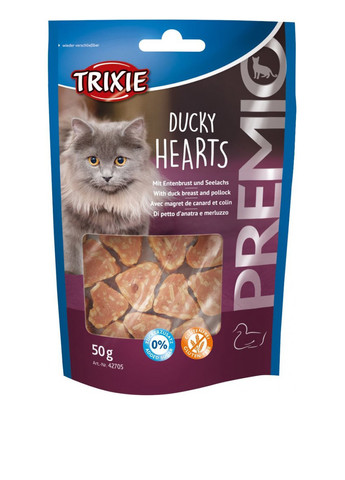 Лакомство для котов Trixie PREMIO HEARTS, с уткой и минтаем (Трикси Премио Хеарц) – хорошее угощение для вашего питомца. Чтобы ваша кошка имела хорошее самочувствие, рекомендуется использовать специальные лакомства. Благодаря лакомству для кошек Trixie PREMIO HEARTS, у вашей любимицы не будет дифицита необходимых витаминов в организме. Лакомство состоит из полезных витаминов, которые необходимы для оптимального развития и укрепления иммунитета кошек. Без добавления сахара; в герметично закрывающейся упаковке.