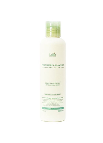 La'dor Pure Henna Shampoo - шампунь против выпадения волос, который состоит только из натуральных компонентов. Помимо идеального очищения кожи головы и волос, шампунь устраняет зуд и раздражение кожи, борется с шелушение и перхотью. Также средство питает волосы и дерму витаминами и микроэлементами, делает локоны крепкими, блестящими и густыми. Хна, которая входит в состав шампуня «Ладор», восстанавливает кератиновый слой. Экстракт ментола приглашает работу сальных желез, что позволяет волосам дольше выглядеть чистыми и свежими. Способ применения: предварительно намочить волосы. нанести средство на руки и вспенить. Нанести на волосы (от корня и по всей длине), хорошо бережно помассировать, смыть под проточной водой. Повторить процедуру еще раз. Объём: 200 мл.