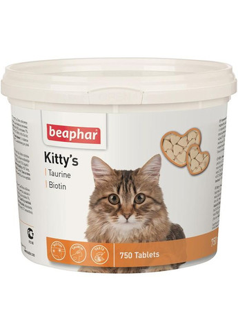 Витаминный концентрат в виде таблеток Beaphar Kittys Mix – это кошачье удовольствие из натуральных дрожжей с добавлением витаминов, минералов и микроэлементов. Таблетки препарата изготовлены в виде сердечек трех видов: сердечки с белками, сердечки с таурином и биотином, сердечки с творогом. Употребление таурина стимулирует нормальное функционирование сердца, головного мозга и улучшает зрение. Биотин или витамин H обеспечивает здоровую кожу и блестящую шерсть. Белки помогают поддерживать здоровье, а творог придает разнообразие вкуса. Состав: молоко и молочные продукты (творог не менее 1,4%), сахара, минеральные вещества, моллюски и ракообразные (креветки не менее 2,7%), мясо и продукты животного происхождения, рыба и рыбопродукты (трески не менее 1,3%), дрожжи, продукты растительного происхождения. Анализ: зола 12,7%, протеин 9,0%, клетчатка 6,6%, влажная 4,4%, жиры 4,1%, кальций 1,6%(Са), фосфор 1,2%(Р), натрий 0,4%(Na), калий 0,04%(K), магний. Добавки на 1 кг: витамин В1 – 18 мг, витамин В2 – 14 мг, витамин В6 – 14 мг, витамин В12 – 750 мкг, пантотеновая кислота (витамин В5) – 18 мг, никотинамид – 215 мг, биотин – 450 мкг, таузин – 1 кг веса животного в день. Можно давать взрослым, беременным и кормящим животным, а также котятам в возрасте от 6 недель. Нет ограничений по продолжительности использования. Противопоказаний нет. Способ хранения: хранить в сухом месте при комнатной температуре Фасовка: 75 шт./уп, 180 шт./уп.