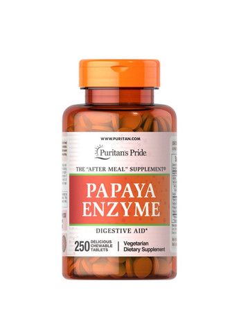 Ферменты папаи Puritan's Pride Papaya Enzyme 250 жевательных таблеток Диетическая добавка. Не является лекарственным средством. Описание Puritan's Pride Papaya Enzyme - сочетание сладкой папайи с укрепляющими ферментами, включая папаин, амилазу и протеазу. Папайя - это фруктовый плод, происходящий из тропических районов Центральной Америки. Он содержит ряд витаминов, минералов, белков, но особенно ценится ферментом папаина. Ферменты – это биокатализаторы, участвующие в обменных процессах и с помощью которых расщепляются липиды, углеводы и белки. Папаин участвует в переработке белков, их расщеплении на аминокислоты, а также в выработке пищеварительных ферментов. Это способствует более быстрому и эффективному пищеварению, хорошему усвоению питательных веществ, а также предотвращает расстройства пищеварительной системы (метеоризма, тяжести, боли в желудке, запора). Папаин предотвращает отложение резервного жира и даже ликвидирует эти отложения.Papaya Enzyme также способствует пищеварению и усвоению питательных веществ, особенно протеинов и углеводов; нормализует пищеварение; восстанавливает микрофлору кишечника и укрепляет иммунитет. Puritan's Pride Papaya Enzyme не содержит искусственных красителей, консервантов, молока, лактозы, сои, глютена, пшеницы, дрожжей, рыбы, натрия. Рекомендации по использованию: Для совершеннолетних жевать три (3) таблетки вместе с едой, от одного до трех раз в день. Состав в одной порции – 3 таблетки: - Энергетическая ценность – 5 ккал - Углеводы – 1 г - Сахар - Другие ингредиенты: сахароза, карбонат кальция, растительная стеариновая кислота, растительный магния стеарат. Содержит: кукурузный крахмал, ароматизаторы папайи. Предупреждение: только для взрослых. Если вы беременны, кормите грудью, пытаетесь забеременеть или принимаете лекарство – перед использованием обратитесь к врачу. Хранить в прохладном, сухом и недоступном для детей месте.